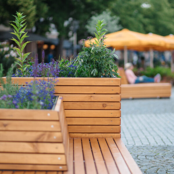 Mit dem Ziel, Garten-Flair und eine Erlebnisoase in der Innenstadt zu schaffen, wurden zwei regionale mittelständische Unternehmen beauftragt, die durch dieses Projekt bis heute zusammenarbeiten. Damit kann ein zusätzlicher positiver Aspekt der Wirtschaftsförderung in der schwierigen Pandemie-Lage resümiert werden.